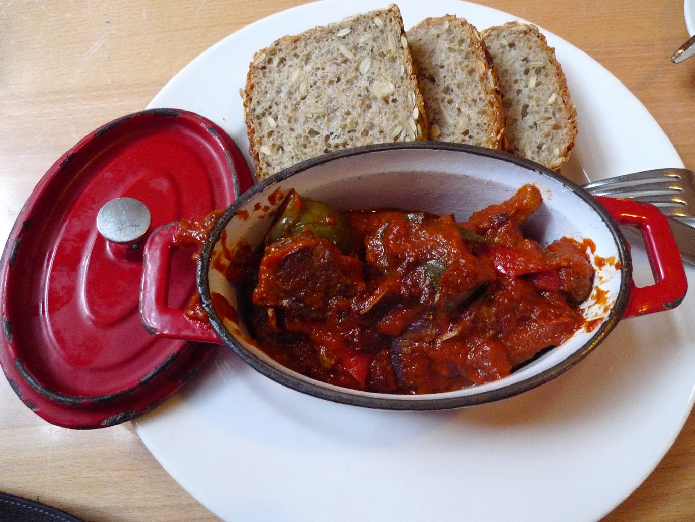 Zacna jest też wołowina z warzywami w sosie pomidorowym. I 3 pyszne pajdy pierwszorzędnego chleba.